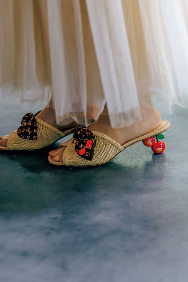 彫刻的なチェリーシェイプのヒールがアイキャッチー。