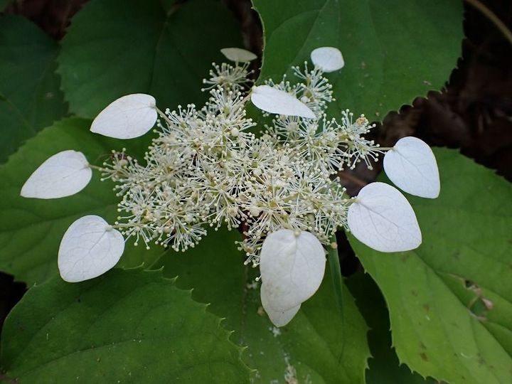 森の花の中には、小さな花が集まって大きく見える植物がたくさんあります。その代表格がアジサイの仲間。