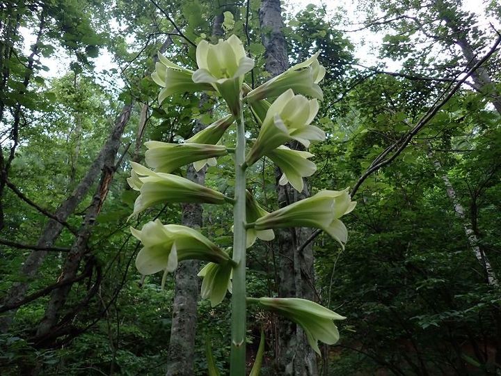 夏の森で存在感を存分に発揮しているのが、ラッパのような花をたくさんつける「オオウバユリ」。