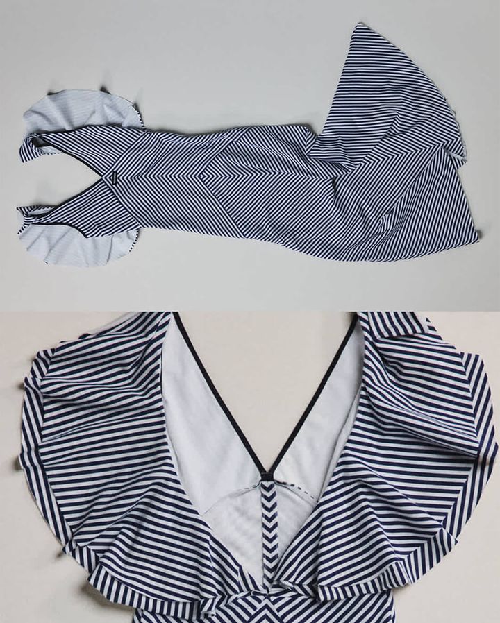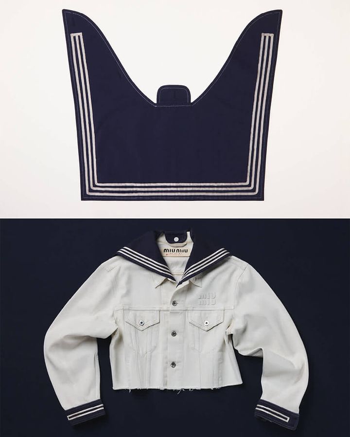 また、セーラーカラーやレースつきジャージー、赤を効かせたバレリーナシューズなど、マリンコードを遊び心と共に再解釈したアイテムが揃う。