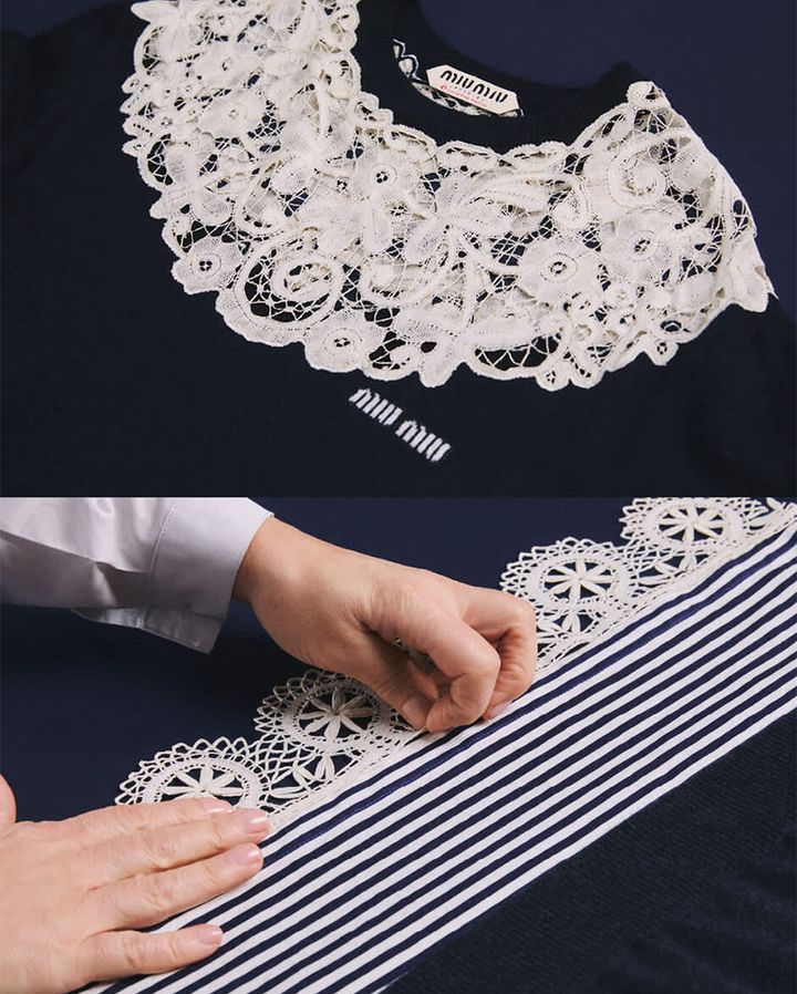 すべてのアイテムに、「MIU MIU UPCYCLED」のラベルとルーツを示すタグが付属。