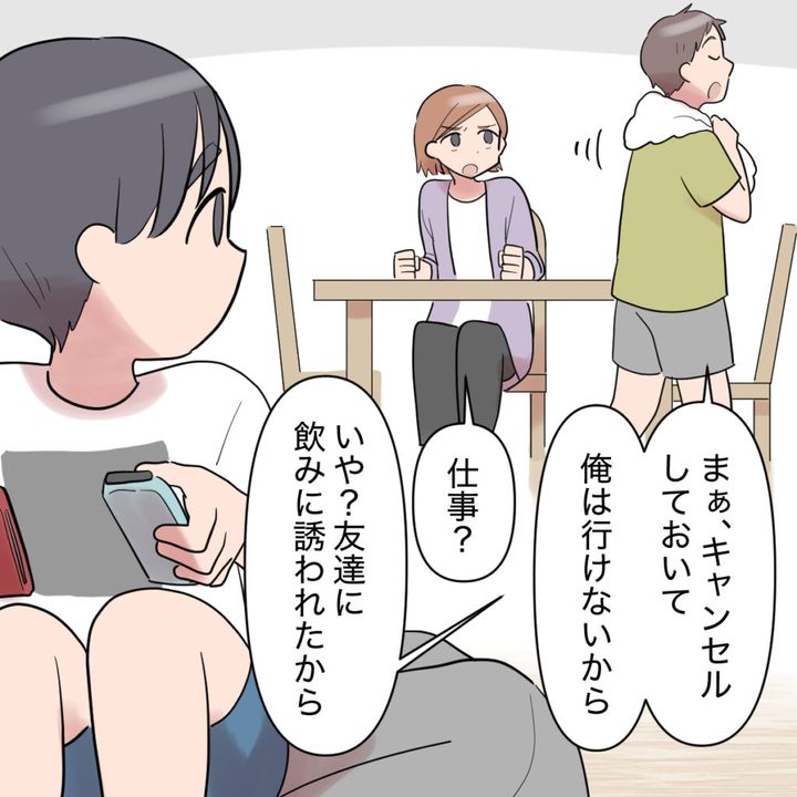 夫はごめんの一言もなく「まぁ、キャンセルしておいて。俺は行けないから」とだけ言って部屋を出ていこうとします。「仕事?」とキャンセルになった理由を聞いてみると、夫は平然と「いや?友達に飲みに誘われたから」と言いました。