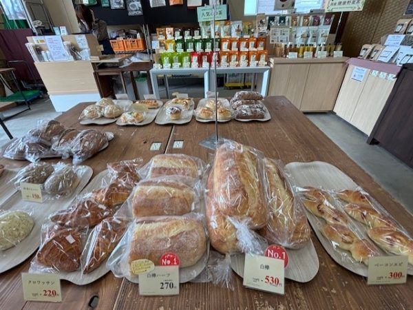 地元食材を活かした惣菜パンなどパンコーナー。人気No.1!のパンは、白樺。これも直売所価格で750円が530円!