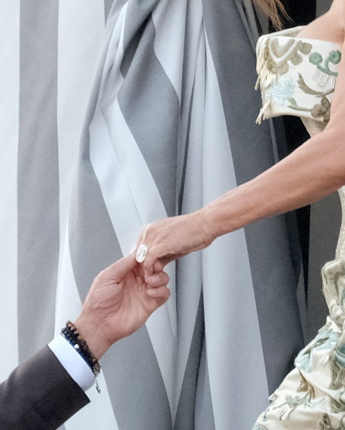 ところが、この巨大なダイヤモンドも、ベネチア婚直前に披露したさらに大きなダイヤモンドによって、たちまち影が薄くなりました。ジェエラーたちの見立てによれば、こちらはおよそ30カラット、推定価格は300万ドルから500万ドル(4億3,000万〜7億2,000万円)。ベゾスの宇宙開発企業が宇宙から持ち帰ったのかと疑うほどの、桁外れな一品です。