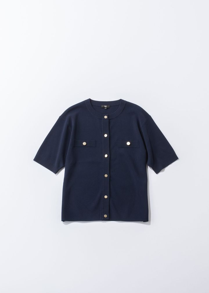 接触冷感素材に、UVカット機能をさりげなく忍ばせたネイビーカーディガン。涼やかな半袖デザインで、日差し対策も抜け感も一枚で叶えます。知的で清潔感のあるネイビーは、オフィスから週末のお出かけまで幅広く活躍してくれます。