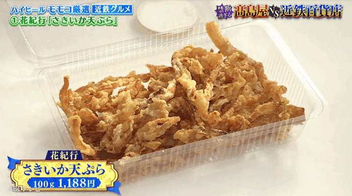 そんなモモコがスタジオに持ってきたのは、あべのハルカス近鉄本店でしか取り扱っていない、花紀行のさきいか天ぷらだ。モモコと同じく大阪在住のなるみは「さすがや~! やっぱり、さすがやお姉さん!」とうなりまくった。
