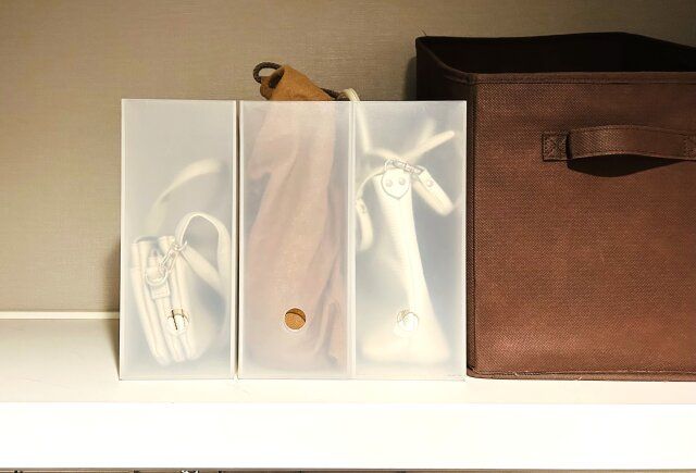 半透明タイプのボックスなら中身がひと目でわかって管理しやすいですし、見えにくいタイプを使う場合は、ラベルを貼っておくと良いでしょう。使いたいバッグがすぐに取り出せて、日々の身支度がスムーズになりますよ。