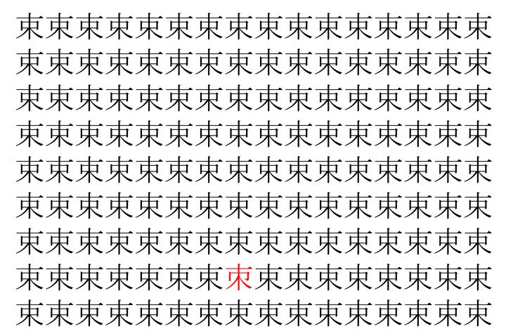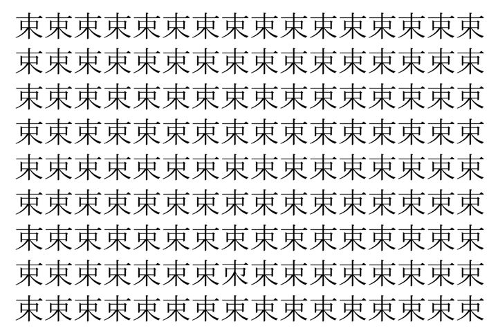 画像の中には、「束」という漢字が縦に9行、横に16個並んでいます。 全部で144個となりますが・・・、そのうち1つは「異なる漢字」となってますよ!!