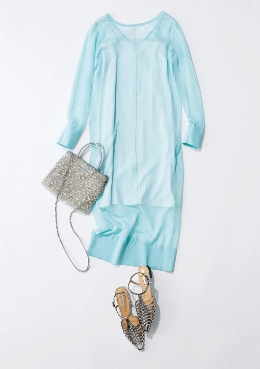 ワンピース¥23,100/MIESROHE(MIESROHE ルミネ新宿1店)バッグ¥92,400/アンテプリマ/ワイヤーバッグ(アンテプリマジャパン) サンダル¥31,900/ヨシト(ニューロンドン)