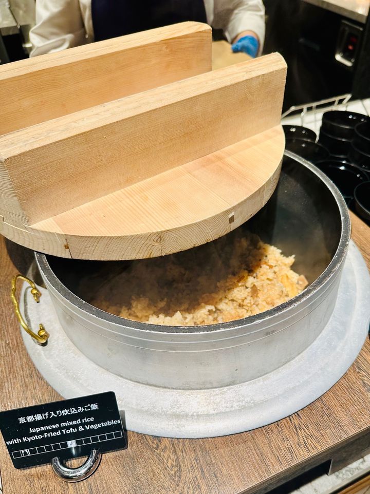 お釜で炊いた京都揚げ入り炊き込みご飯。