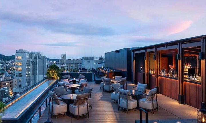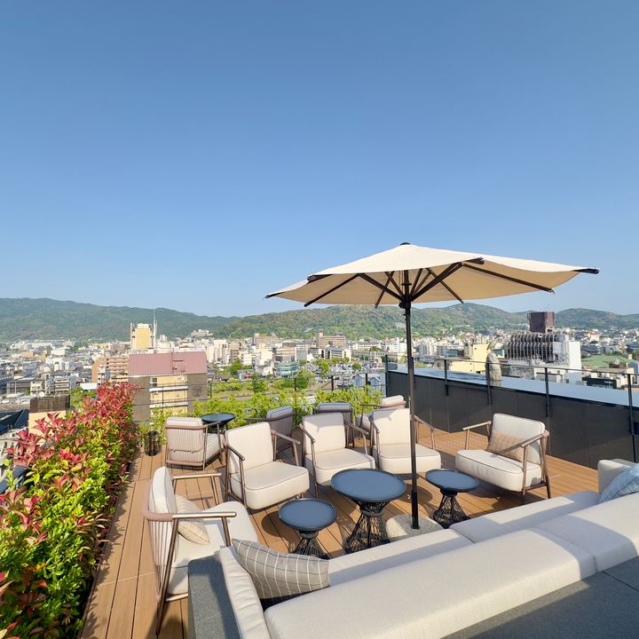 鴨川や東山など京都の町を見渡せるルーフトップは、唯一無二の開放感!昼夜の時間帯で異なる表情を見せるので、サンセットタイムもお勧めです。