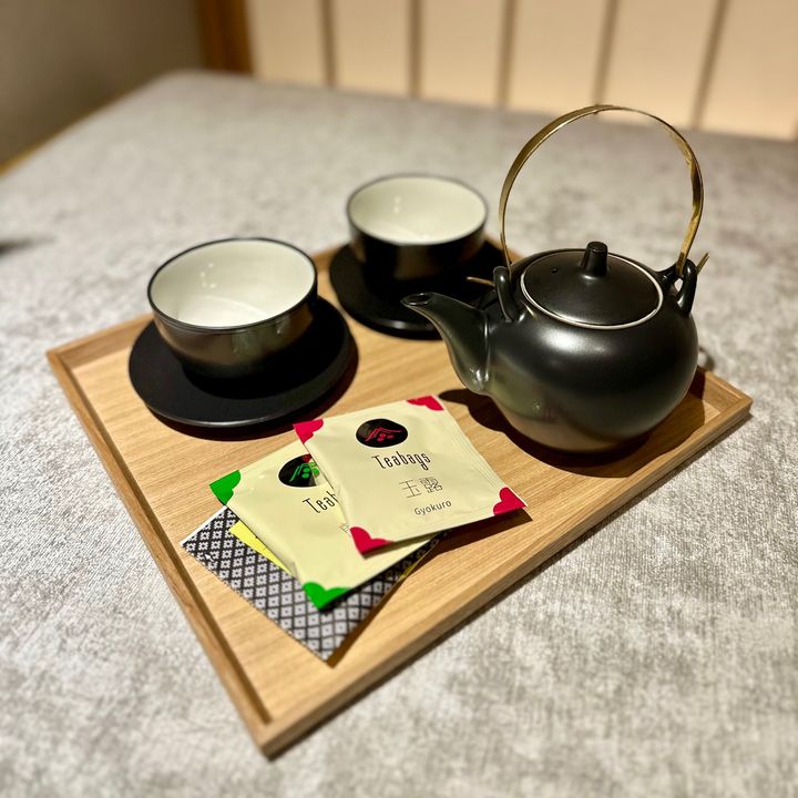 京都らしい茶器と一保堂のお茶が備わっています。