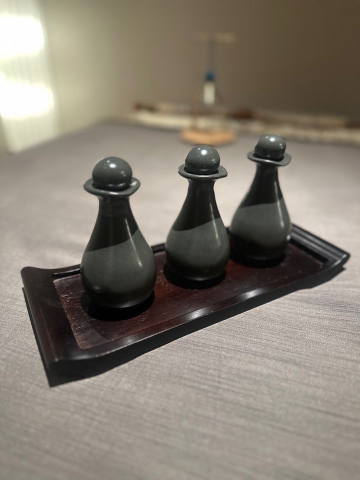 始まりと終わりの際に、リラックスと浄化のために鳴らす宇治産の「おりん」。心が洗われるような音色で場の空気を変えてくれます。施術中は至福のマッサージで夢見心地に。
