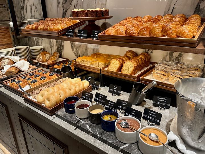 クロワッサンやベーグル、マフィン、フルーツデニッシュ、バケット、ブリオッシュ、フォカッチャなどホテルメイドのブレッドも種類が豊富!焼きたての良い香りが漂っていました。すべて手作りで毎朝出来立てを並べており、パン好きには堪らない美味しさ♡