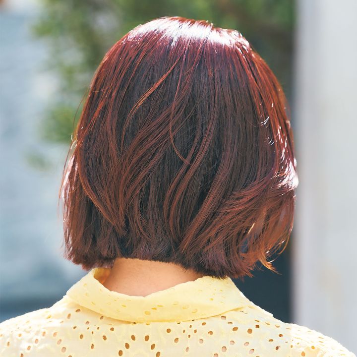 柔らかく流れる表面のレイヤーで、動きのある軽やかなボブが完成。暖色でツヤを出し、さりげないハイライトで立体感が生まれます。