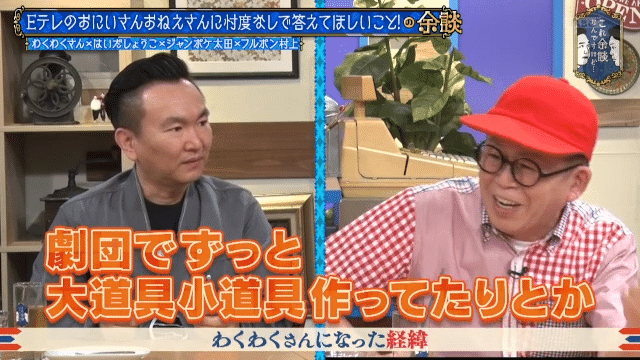 その話を聞いた濱家は「あの回、鮮明に覚えてるよな」と嬉しそうに回想。山内が「もともと工作が好きだったんですか?」と尋ねると、久保田は「劇団でずっと大道具小道具作ってたりとか。貧乏劇団でしたから全部作ってたんで」と自信を覗かせた。