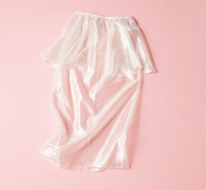 クラゲをイメージしてデザインされた、光沢のある極薄素材とペプラムがポイント。スカート(ロエフ/エイチ ビューティー&ユース)