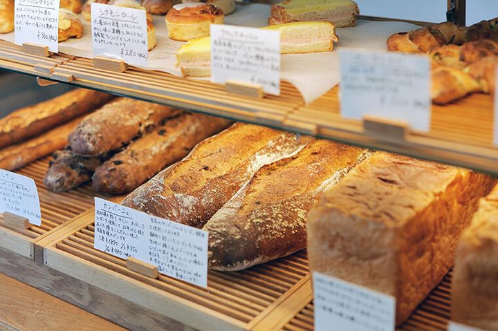 木棚の上段に、シナモンロールや、クロワッサンダマンドといった、菓子パンなども揃えるのは「本来、パンは地域に密着していると思うんです。ふらっと買いにこられた近所の方が、ハード系のパンにも興味を持っていただけるような、入口になれば」という思いから。