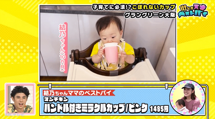 公園でピクニック中のママのベストバイは、米ロサンゼルスのベビーキッズブランド・マンチキンのミラクルカップ。このカップの特徴は、唇で挟んだところだけ飲み物が出てくる、特許取得の飲み口です。360度どこからでも飲めるのにこぼれにくいため、子どもの“コップ飲み”の練習にピッタリで、ママは「これが一番買って良かった!」と教えてくれました。