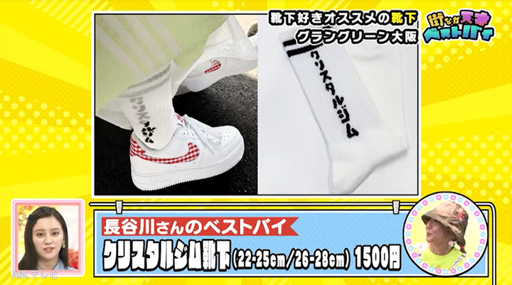 ほかにも天才ピアニストは、うめきた公園にいたキュートで個性的なファッションの女性2人組にインタビューしました。そのうちの1人のベストバイは、マヂカルラブリー・野田クリスタル発案のパーソナルトレーニングジム・クリスタルジムのグッズ靴下。彼女いわく、「かわいいと思って買って良かったんで、友達にもプレゼントしました」とのことです。