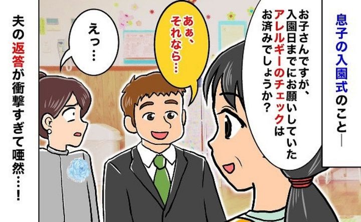 そして、入園式当日。アレルギーチェックのことを先生から聞かれて、私が答えようとすると、夫が先に返事をしたのです……。