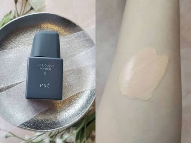まずチェックしたいのは、乾燥崩れを防ぎながら透明感を引き出すベースメイク。大人肌に欠かせない“潤いクッション”を作るのが、エストの「ジュリオロジープライマーB」。