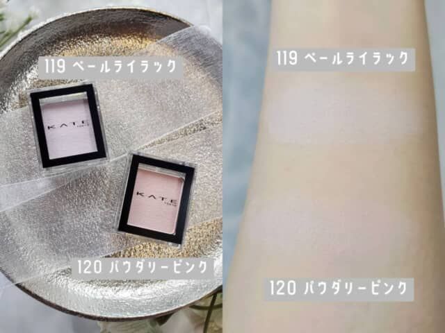 ▲ケイト「ザ アイカラー」 新6色(写真は119 ペールライラック、120 パウダリーピンク) 各¥770(税込・編集部調べ)※数量限定