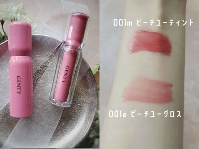 ▲ジェンティー「モチュルンリップティント/グロス」 全4色(写真は001 eピーチユー) 各¥1,320(税込)