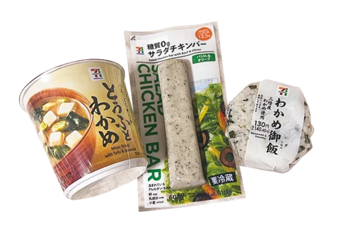 休憩時間のタイミングで夜ごはん。バイトの日はコンビニでおにぎり、サラダチキン、おみそ汁を買って食べるのがマイルール。