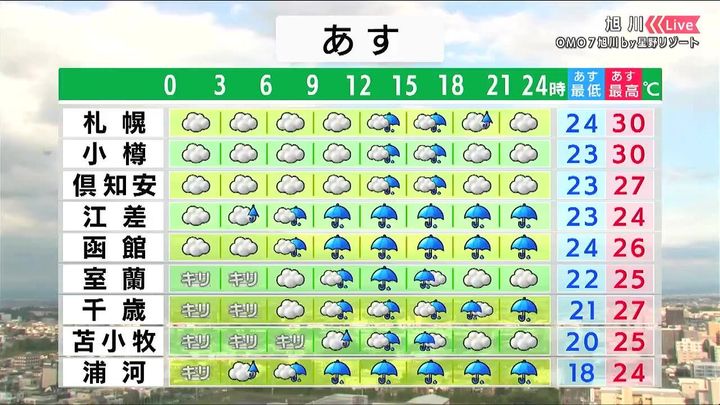 ・あすの札幌の朝昼晩の天気