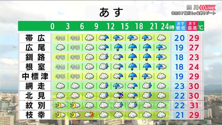 ・あすの北海道の天気と気温