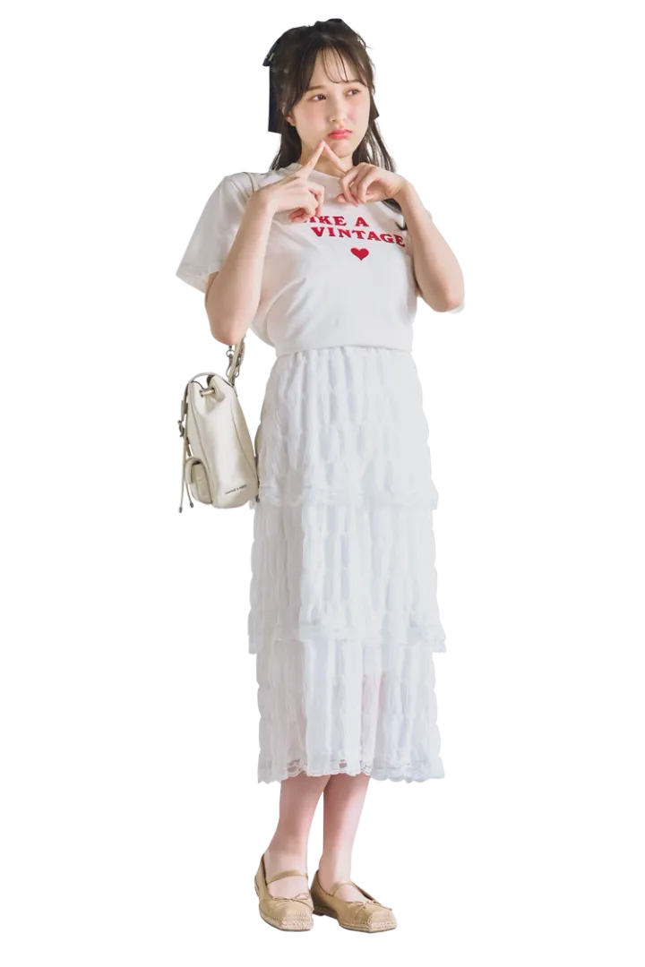 シンプルだからあわせが楽しい♡ 乙女チックな「白ロゴTシャツ」の着回し4選