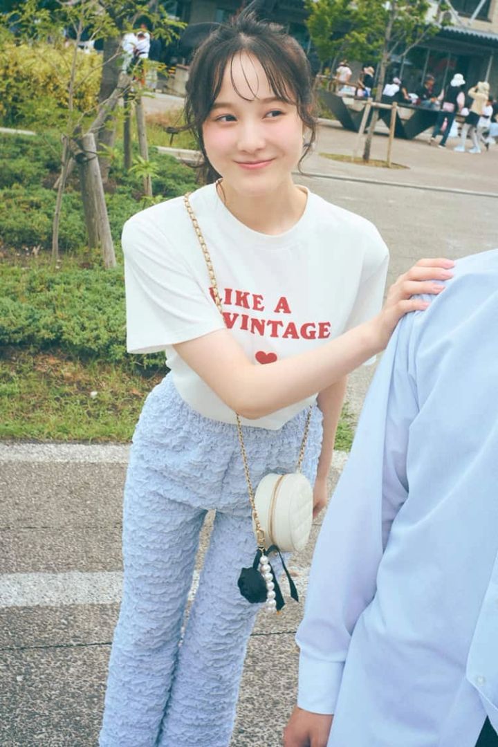 3. シンプルだからあわせが楽しい♡ 乙女チックな「白ロゴTシャツ」の着回し4選