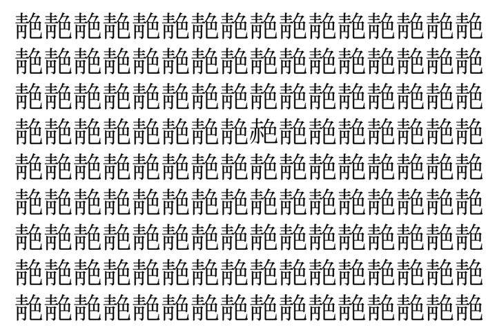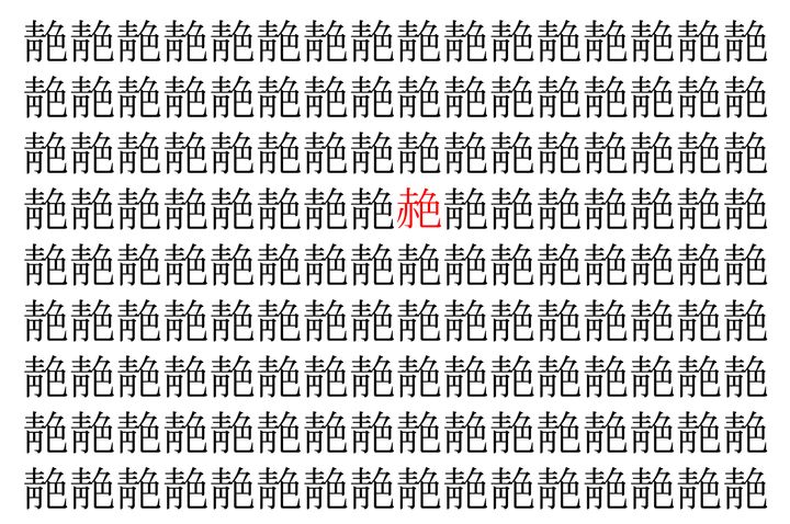 画像の中には、「靘」という漢字が縦に9行、横に16個並んでいます。 全部で144個となりますが・・・、そのうち1つは「異なる漢字」となってますよ!!