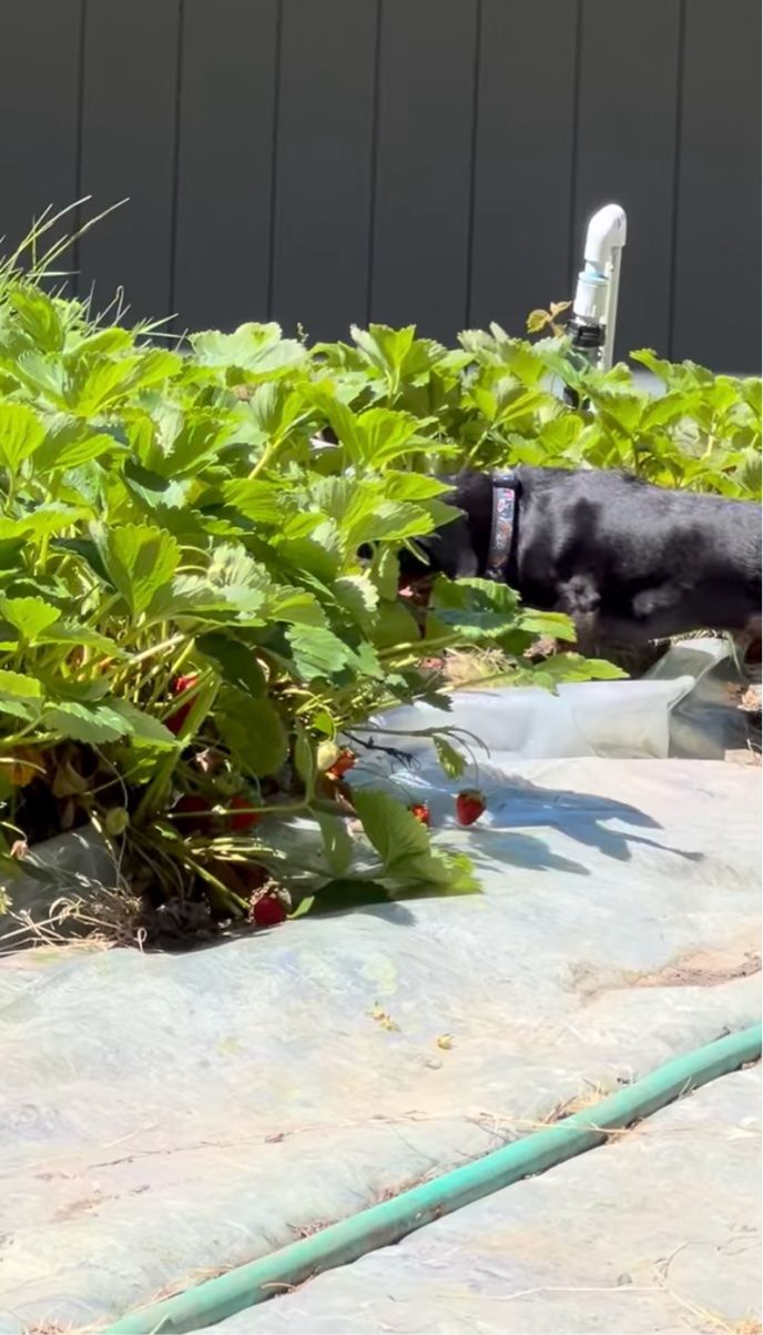 3. 飼い主は見た!畑に実った美味しそうな真っ赤なイチゴをつまみ食いするミニチュアダックスフンド【アメリカ・動画】