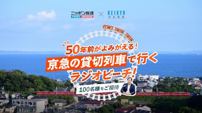 「ニッポン放送×京急電鉄 50年前がよみがえる!京急の貸切列車で行くラジオビーチ!」は、7月13日(日)午前中に京急電鉄の品川駅を出発し、ラジオビーチの会場がある三浦海岸駅に到着する。応募は、特設HPから。締め切りは、7月7日(月)23時59分 までとなっている。
