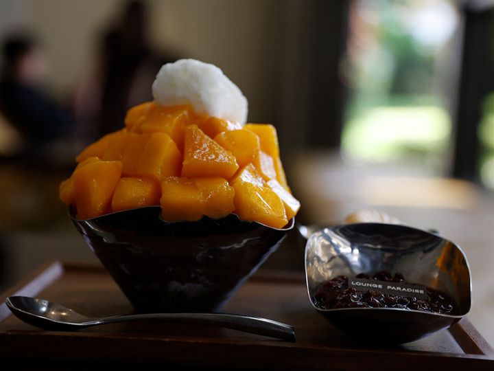 夏限定デザート。高級マンゴーが山盛りの「済州島産アップルマンゴーピンス」98,000ウォン(約10,300円)※8月31日まで