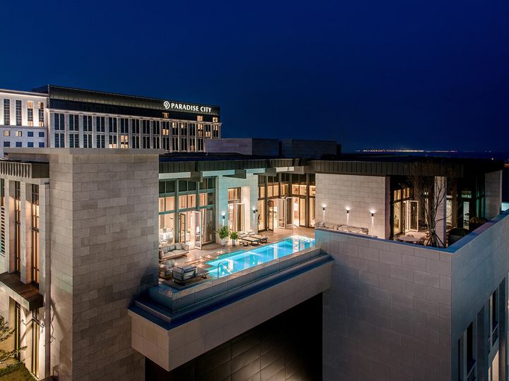 2017年に開業したパラダイスシティは、北東アジアで初めての統合型リゾートで、仁川国際空港(ターミナル1)からは専用シャトルバスで約5分、ソウル中心部からも車でおよそ40分と、アクセスの良さが魅力。