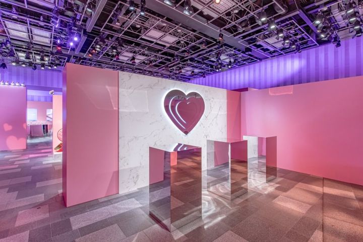 サナさん「本当にどのスペースもすっごく可愛くて魅力が沢山あったのですが、なかでも、新鮮だな、可愛いなと思ったのは、ハートのソファ。そのソファは、座って上を向くとミラーになっていて、ミラーのセルカポーズで楽しく写真を撮れる空間になっていました。あと、ラブチャレンジもとても面白いと思いました。グロスプランパーの写真を使ったトランプがあって、同じ絵柄を揃えていって成功すると、プレゼントもいただけるみたいです。友達とも恋人とも楽しんでいただける空間になっていると思います」