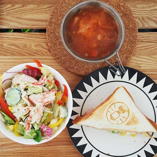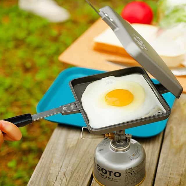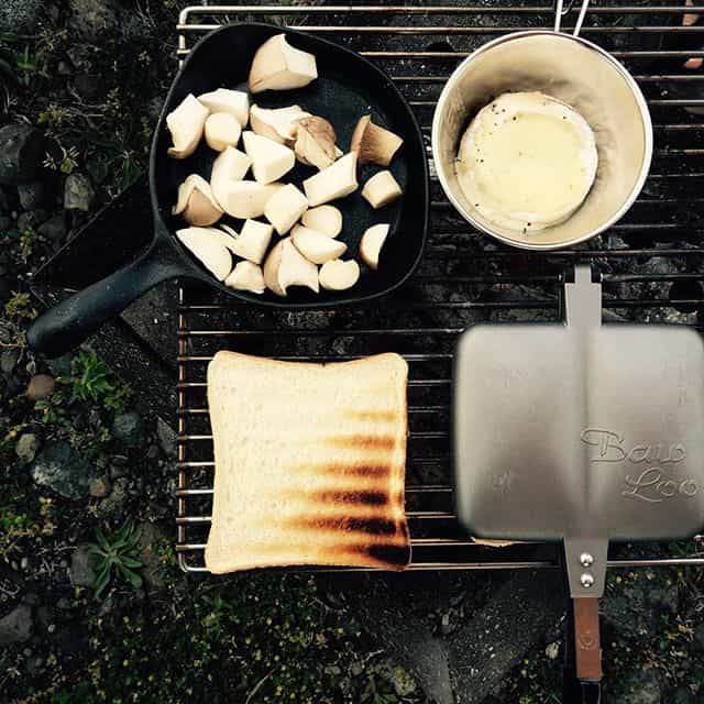 アウトドアシーンでの利用も多く、バウルーのロゴ入りのホットサンドメーカーはシンプルながらも本物感があり写真に生えますね。