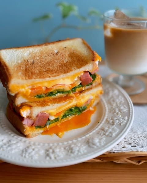 スパイシーチキンとチリソース、チーズのホットサンド。朝からこんなに豪華な朝ごはんだと学校やお仕事も頑張れちゃいそうですね。