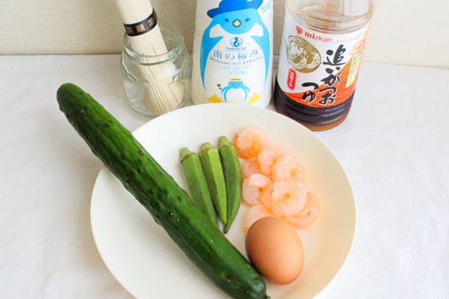YouTubeの料理系チャンネル『mamaのアイデア料理』で見つけた、「七夕そうめん」。添える具材は、きゅうり、薄焼き卵、オクラ、エビ。いわゆる、そうめんによく添えられている具材ばかりです。けれど、形を変えて盛り付けるだけで、とってもかわいく、食卓が華やぐそうめんになりました。