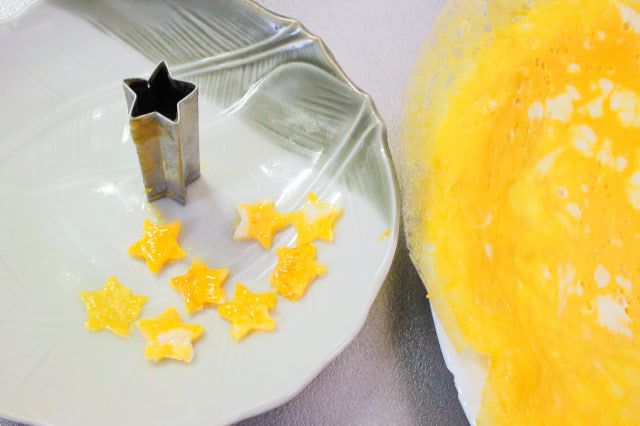 3. 星の抜き型で薄焼き卵を抜きます。