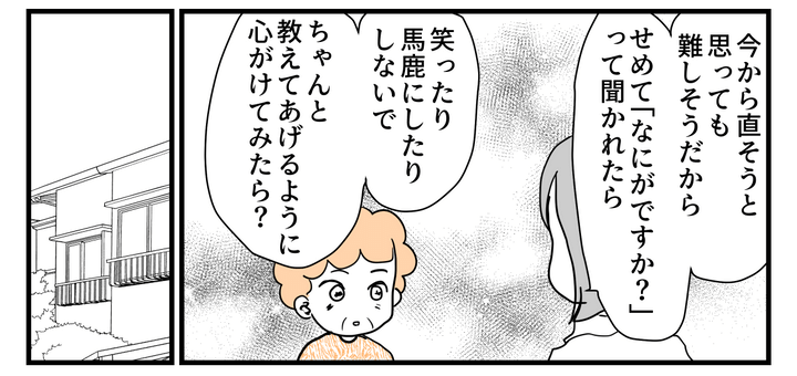 「今から直そうと思っても難しそうだから、せめて『なにがですか?』とか聞かれたら、笑ったり馬鹿にしたりしないでちゃんと教えてあげるように心がければいいんじゃないの?」2人にこうアドバイスしてもらったので、ユカさちゃんと話すときに気をつけてみました。