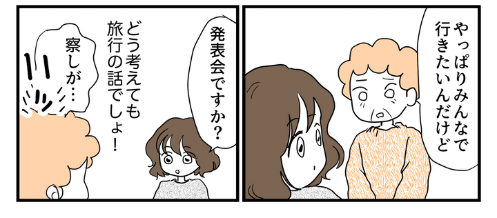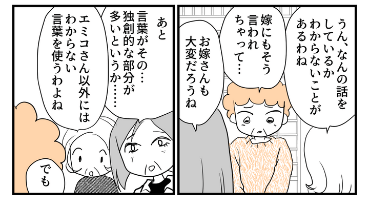 私はエミコ(60代)。先日、一緒に旅行するはずだったご近所のお友だち、シズカさんとチアキさんにおいて行かれてしまいました。話がかみ合わず、2人は私が旅行をキャンセルしたものだと思っていたそうです。追い打ちをかけるように、嫁のユカ(33)ちゃんからも「お義母さんはご友人の言うとおり言葉が足りないと思います」なんて言われちゃって……。私はまわりの理解力が低いせいだと思うし、理解しないまわりのせいだと思うのですが……。