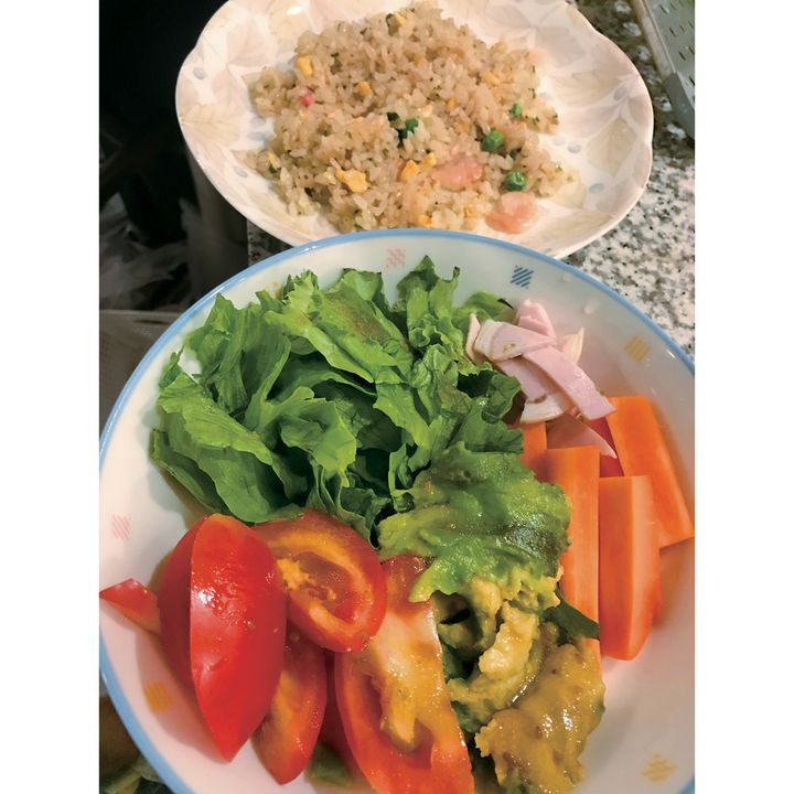 バランスのよいメニューを意識して、料理はすべて手作り。炭水化物も朝昼晩3食必ず食べます。月に一度血液検査をしていますが、内臓はきれいだと毎回先生から褒められます。