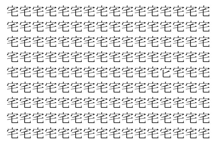 2. 【脳トレ】「宅」の中に紛れて1つ違う文字がある!?あなたは何秒で探し出せるかな??【違う文字を探せ!】