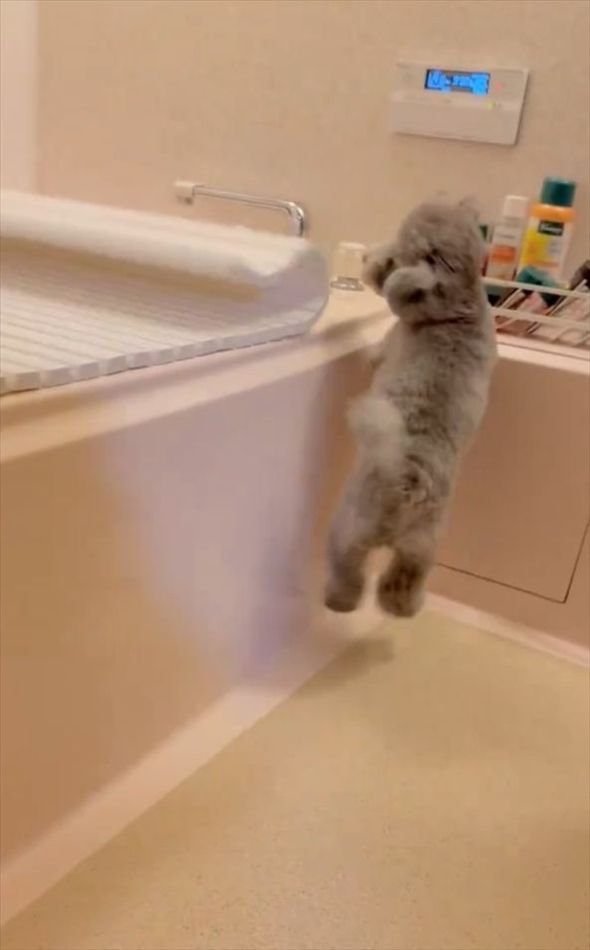フタが閉まると同時に、エマちゃんもお風呂の端に到着。 こんなにかわいらしいステップを踏まれたら、何度もフタを開けては閉めてと繰り返してあげたくなりますね!
