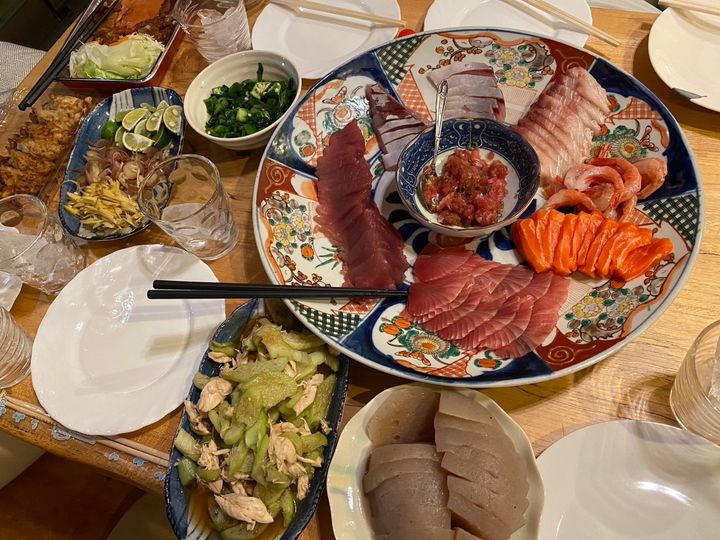 皿鉢料理とは、高知県の郷土料理で、大皿に様々な料理を豪快に盛り付け、大勢で囲んで食べるときの料理様式のこと。この日は民泊の宿に泊まって、みんなで皿鉢料理作り。どの魚にしようか、どう盛り付けようか……考えているだけで夢中になってしまいます。