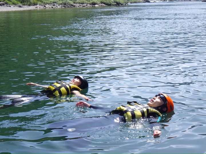 そして……穏やかな流れにたどり着いたら、川にぷかぷかと浮かんでみてください。空を見上げながら水に包まれる至福の時間。忙しい日々も、疲れた心も、美しい川の透き通った水が全てを癒してくれます。